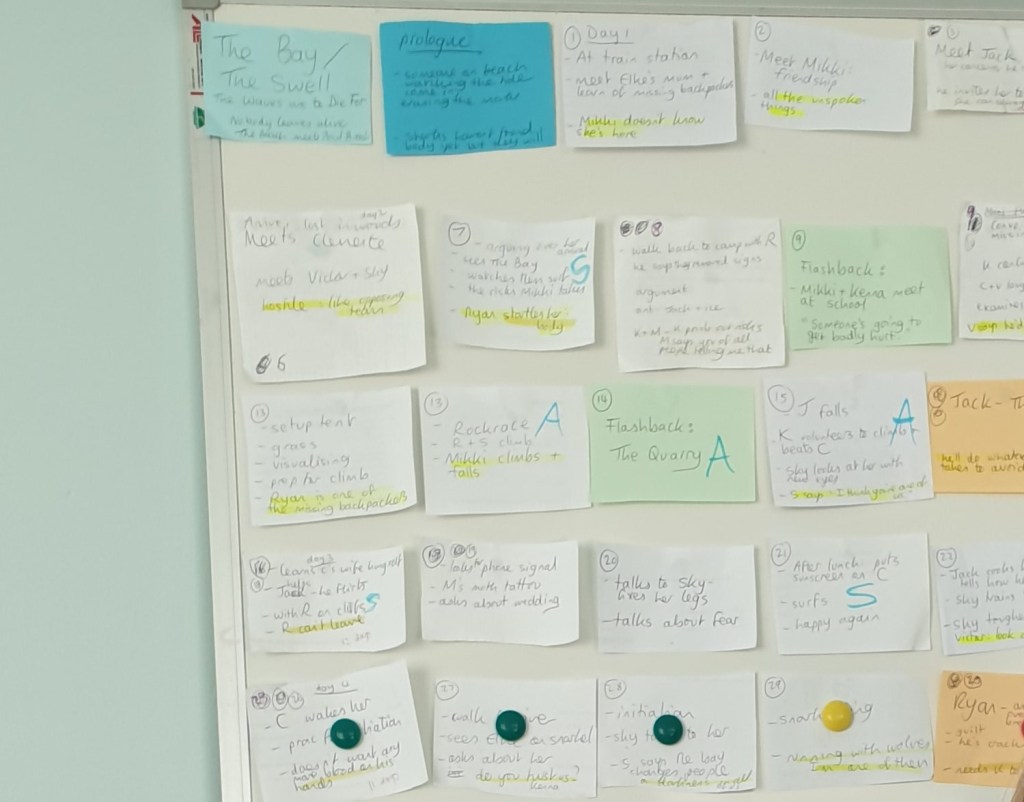 The Post-its Method is particularly helpful with thrillers and crime fiction, in my opinion, and other novels with complicated plots, dual timelines or complicated structures, because it makes it easy to experiment with the order of events.