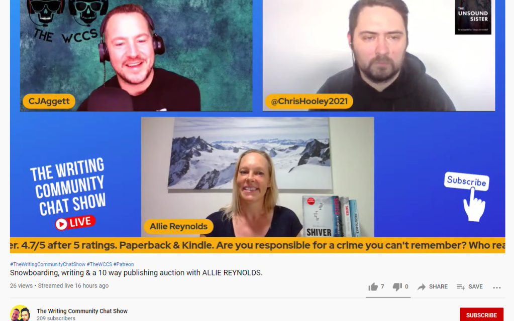 I appeared on The Writing Community Chat Show talking about SHIVER, my writing process, writing tips and journey to publication. Watch it here.